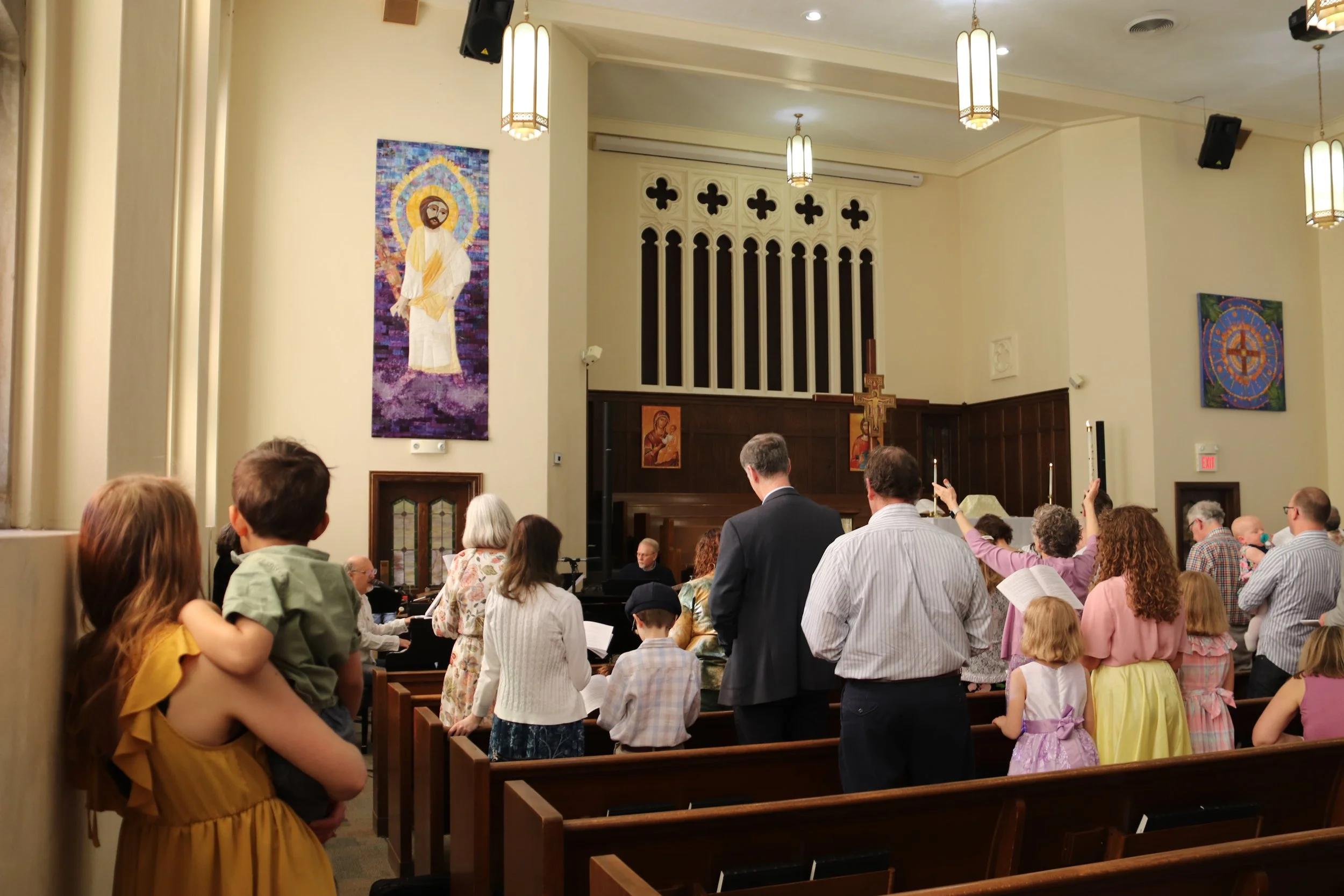 Parents are to check-in their children at the desk before service, bring children down after the Children's Blessing, and pick them up from their classrooms during Passing the Peace.